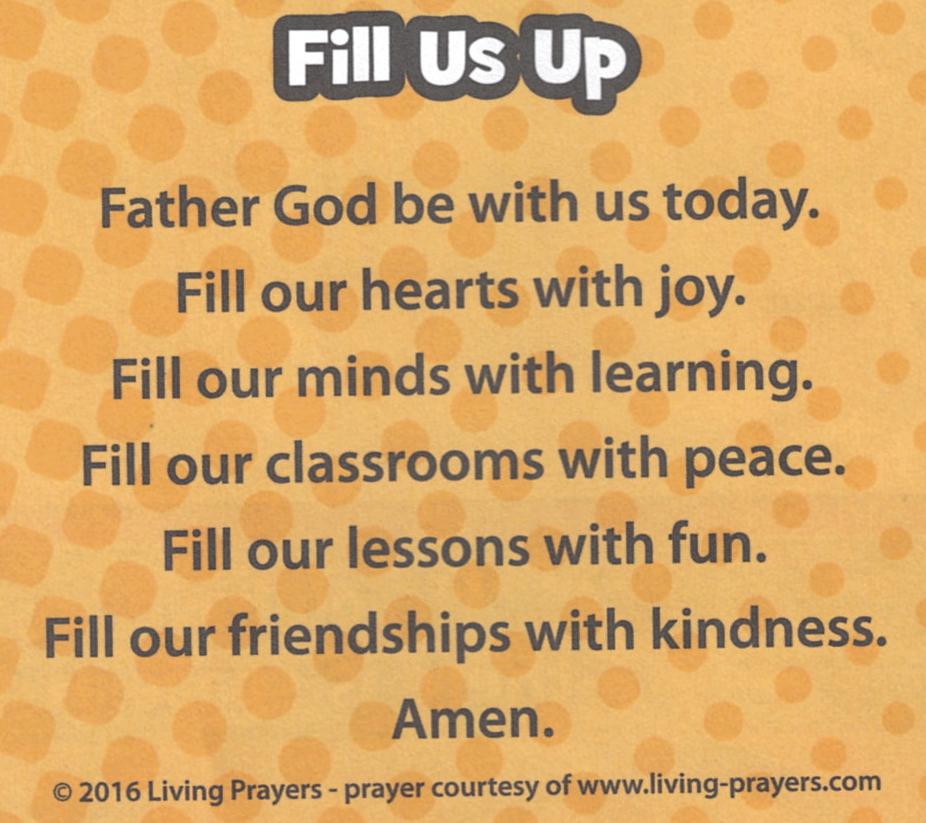 Fill us upprayer. {6pt} On the page left of Lesson 1, the "Fill us up" prayer reads